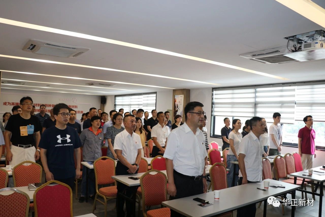 在建黨100年之際,華正黨委于7月27日,在公司黨員活動室召開了第三屆中共浙江華正新材料股份有限公司委員會黨員(換屆選舉)大會,一首《沒有共產黨就沒有新中國》拉開了大會的帷幕。